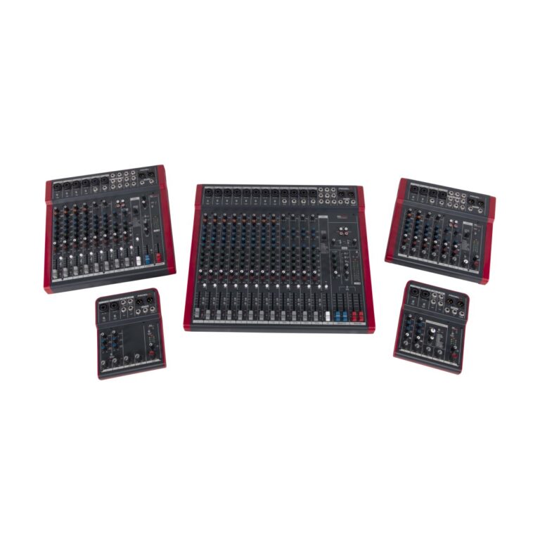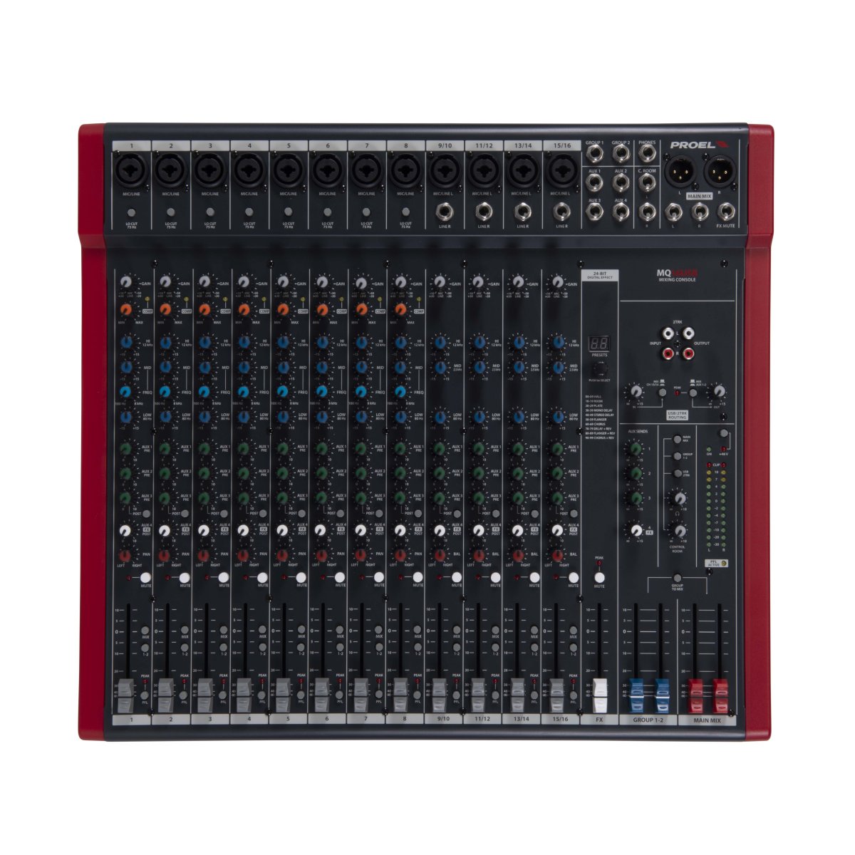 The top-of-the-line MQ16USB feature 16 inputs and 12 microphone channels together with sweep mids and one-knob intelligent COMPRESSORS on mono channels, 4 AUX sends, STEREO GROUP bus and 60mm control faders.