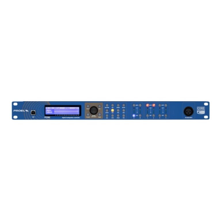The new Proel PC240 and PC260 processors, based on the C-Audio Core DSP platform, allow audio signal processing capable of optimizing system performance using advanced functions and an intuitive user interface with direct access to all editing functions and remote control. The incorporated technology exhibits some interesting features, like programmable sound pressure level management (SPLM), thanks to the use of an internal clock, and full remote control of all functions from a connected PC. PC240 and PC260, both with a full range of functions, each have 2 inputs – with AES digital inputs in the case of the PC260 – and 4 or 6 outputs, respectively. Each input offers a 5-band, fully parametric EQ, 28 bands of graphic EQ, and three bands of powerful and versatile dynamic equalization. Each includes a fully programmable compressor/limiter and up to 600 ms of delay, as well.