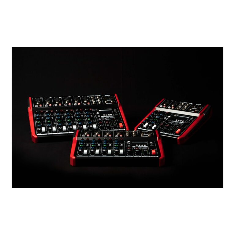 PLAYMIX mixers are available in 3 models, with the same channel and master functions, but offering 6, 8 or 10 inputs respectively. The mono MIC/LINE channels feature low-noise, high-headroom microphone preamps, 3-band EQ with sweep MIDs and HPF, and 60mm control faders, for a full control of your sound.