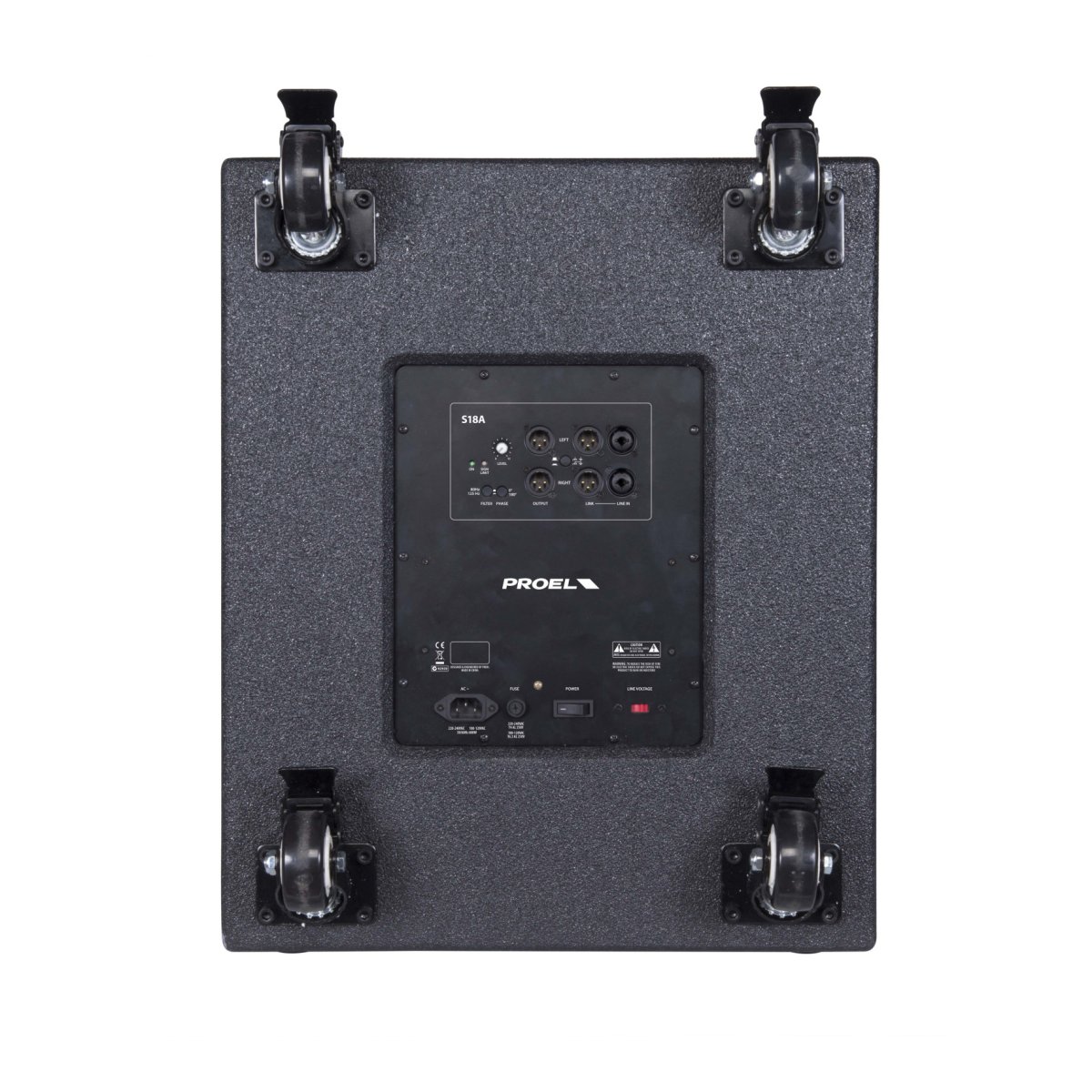 PROEL introduces the S Series, a new range of compact and powerful sub-woofers designed to complement PROEL full-range speakers. The variety of size, power and SPL offered by the four active S models provides, at an unbeatable price point, the perfect low extension solution for any speaker model available in the PROEL range.All the S models feature high-excursion woofers in a Hybrid Band Pass configuration (HBP). This innovative design provides a higher efficiency compared to direct radiation sub-woofers and, in addition, guarantees a much better coupling of the tuning ducts with the external air, reducing the distortion and the air turbulence, for a more defined sound and deep and punchy lows.The new CLASS D amplifier modules with SMPS (Switch Mode Power Supply) can generate a massive amount of continuous power in a compact, lightweight and reliable package. All the modules include a STEREO pre-amp section, 24dB/oct. crossover filters with selectable frequency and PHASE reverse switch.The cabinets are built with 15/18mm plywood and finished with extra-durable polyurethane paint. They feature two flush handles and four sturdy 75mm wheels for an easy transport (S15 and S18 only).
