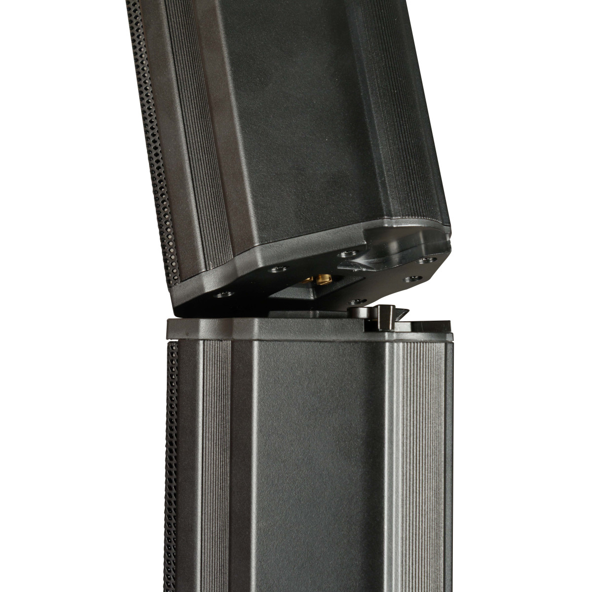 A unique die-cast fast-linking system with integrated connections lets the two top units combine into a single 12-driver column, making it quick and easy to switch between STEREO and MONO setups depending on your application.