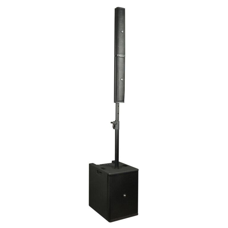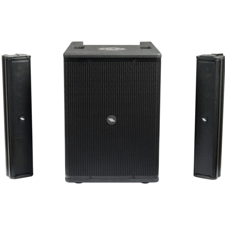 Each top unit is housed in a rugged aluminum enclosure and loaded with six 2.75” neodymium drivers arranged in a vertical array with a progressive down tilt. This advanced configuration expands vertical coverage while maintaining a wide 100° horizontal dispersion, ensuring crystal-clear voice intelligibility and perfectly even sound across the entire audience area. The subwoofer, built from sturdy plywood, features a 12” high-excursion woofer with a 2.5” voice coil for tight, dynamic bass and extended low-frequency response with impressive SPL output.