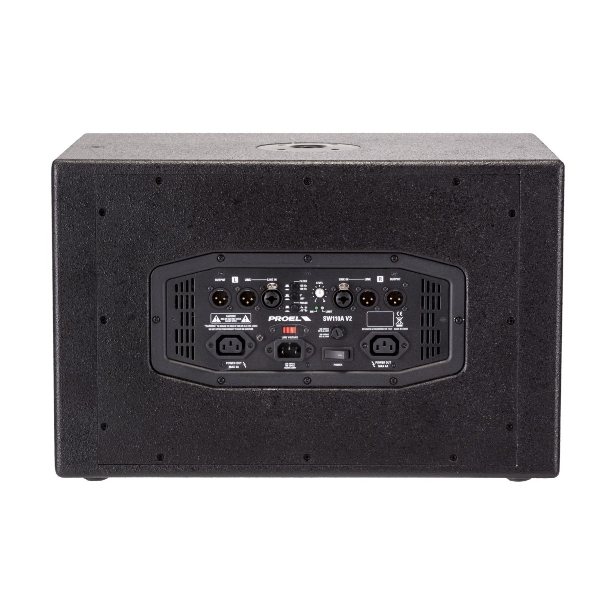 The SW Series is a range of sub-woofers designed to complement PROEL full-range passive or active speakers. The variety of size, power and SPL offered by the five SW models provides the perfect low extension solution for any speaker model available in the PROEL range.All the SW models feature large VC woofers and band-pass or vented design, which provide very ‘punchy’, dynamic lows together with an extended low frequency response.The CLASS D amplifier modules with Switch Mode Power Supply can generate a massive amount of continuous power in a compact and reliable package. All the modules include a STEREO pre-amp section, 24dB/oct. crossover filters with selectable frequency and PHASE reverse switch. The cabinets are built with 15/18mm plywood and feature 2 or 3 metal handles and sturdy 75mm wheels for an easy transport (except SW110).