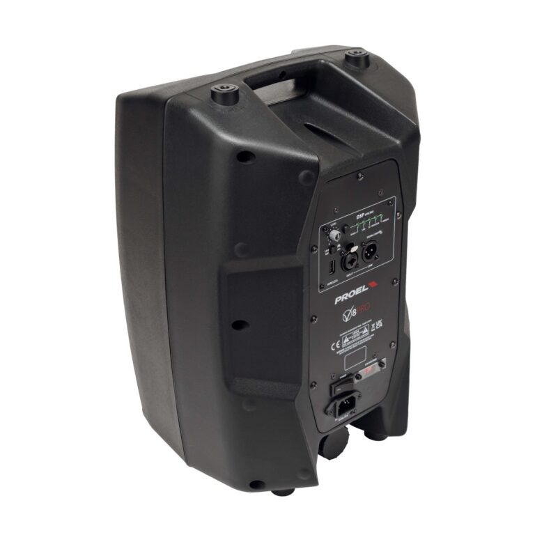 V PRO series is the ultimate evolution of the acclaimed V series of PROEL powered loudspeakers. The V PRO features now a totally new pre-amp section including an advanced processing with high-performance DSP engine, for a very smooth response and a high-definition sound. The possibility to select the 5 different EQ presets allows to adapt the system response to the different applications with a touch of your fingers. These ultra-portable speakers combine, in carefully engineered and light-weight cabinets, the clearest and most accurate PROEL sound with Class D Amplifier technology and Switch Mode Power Supply, offering an unbeatable PA solution at its price point. The four models, V8PRO, V10PRO, V12PRO and V15PRO, feature a new extremely efficient amplifier module capable of delivering 600 W of robust power to the transducers. Thanks to the use of SMPS technology, this power comes in an ultra-lightweight package, making the V PRO the most portable PROEL speakers ever.