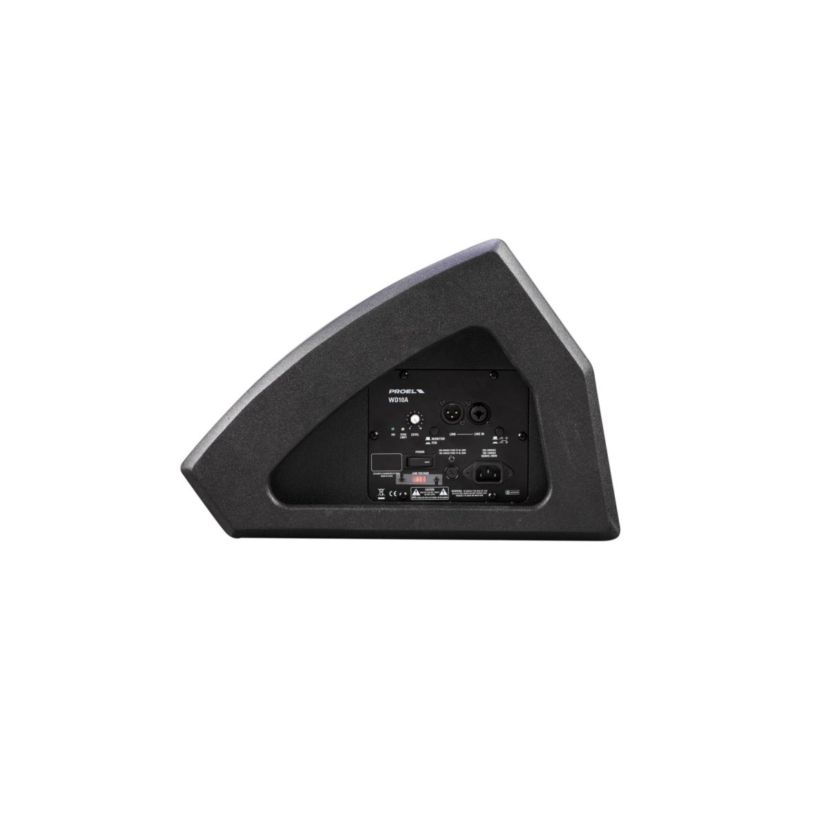 The WEDGE Series is a complete range of active stage monitors designed to offer not only to professional musicians and rental companies, but also to amateur musicians and nonprofessional users, a highly valuable monitoring solution at a very affordable price. The WEDGE stage monitors provide a perfect sound intelligibility and a high SPL in an extremely light-weight and portable enclosure. The coaxial transducers, designed under PROEL specifications, represent the best choice for stage monitors, not only because they fit into more compact cabinets, but also for the fact that they provide a perfect alignment in the emission of high and low frequencies and a controlled directivity for a perfect listening from any position. The lightweight CLASS D amplifier modules with SMPS, coupled to a sophisticated analog processing, provide an impressive sound pressure level, with an extremely detailed response, particularly in the vocal range, and a remarkable resistance to feedback. Two tailored EQ PRESETS are available for the use of the speaker not only for stage monitoring (MONITOR), but also as a MAIN SOUND SYSTEM (FOH). The low-profile, stylish and unobtrusive cabinet, with recessed handles and scratch-resistant polyurethane painting, fits perfectly on any stage. The ultra-compact WD10A offers a high-performance monitoring also on small stages or venues with a limited space and it’s the ideal solution for speech, vocals and keyboards