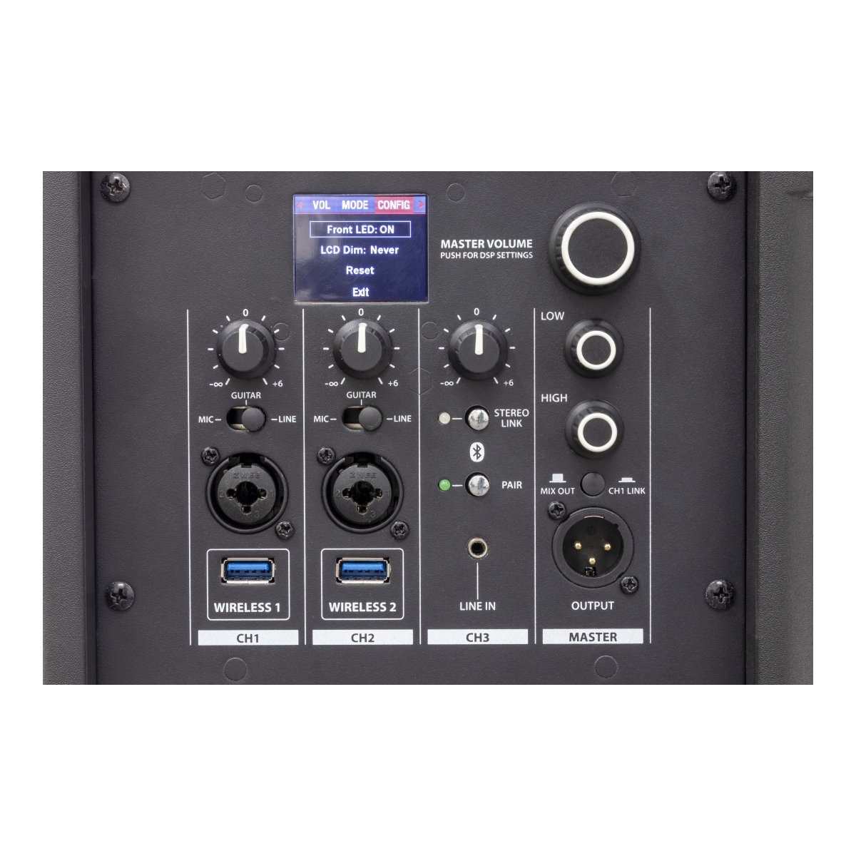 | Inputs | 2 x MIC/LINE (COMBO), 1 X STEREO LINE (MINIJACK), 2 x USB WIRELESS |