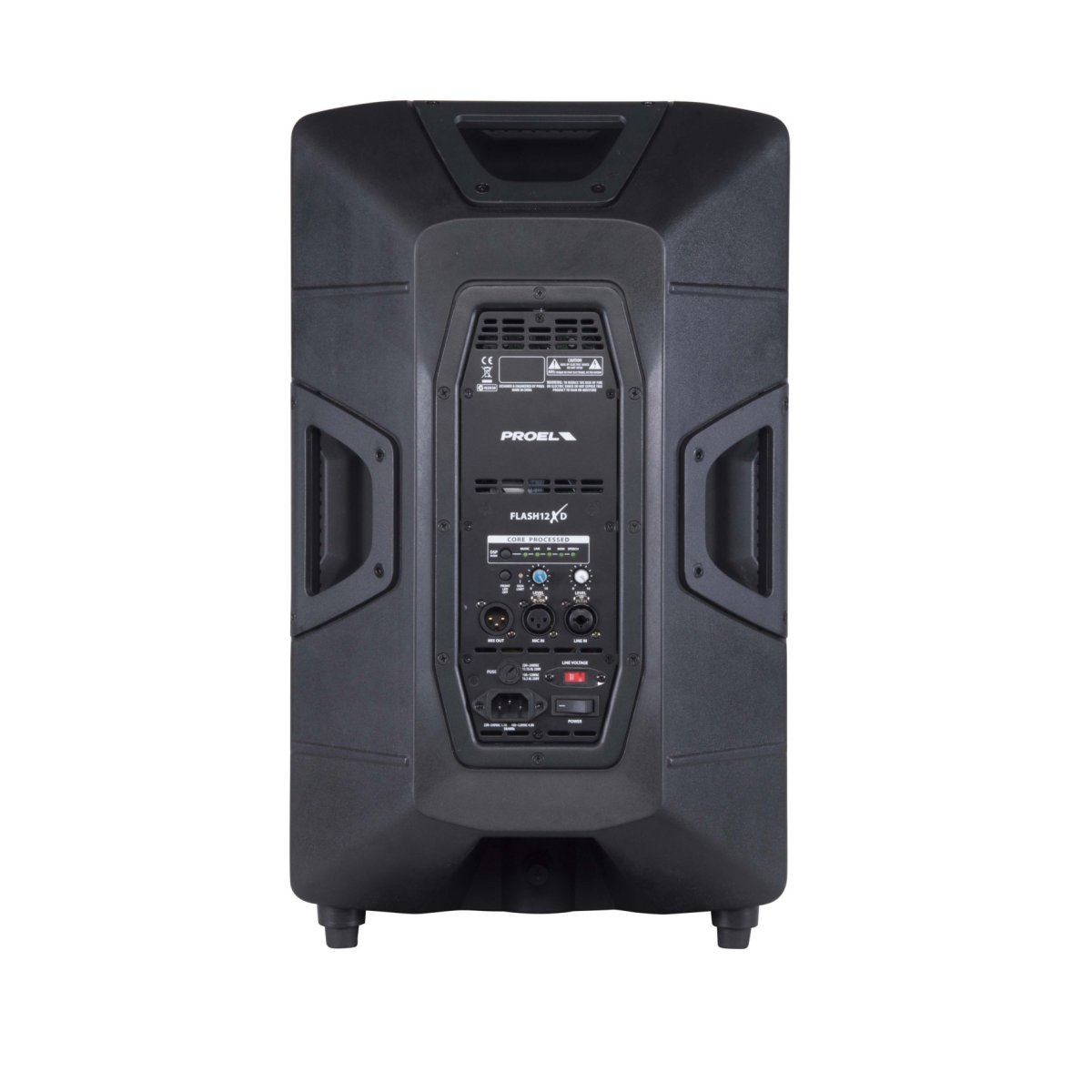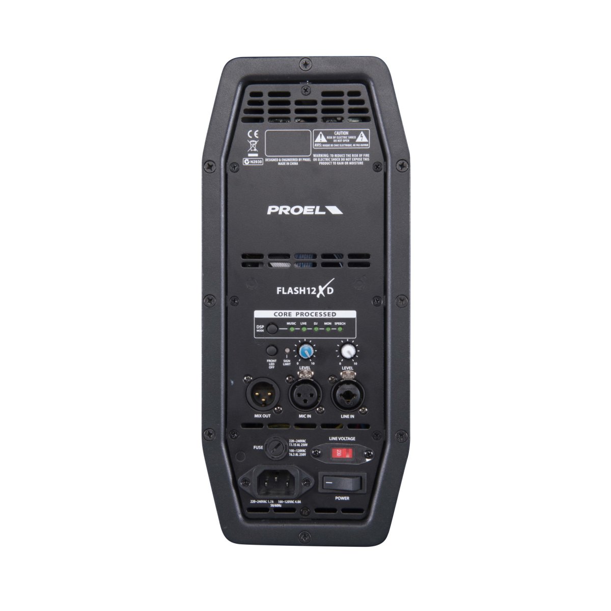 Con FLASH X PROEL introduce la terza generazione di una serie di diffusori che da anni rappresenta un riferimento per i sistemi compatti e portatili. I nuovi diffusori FLASH8XD e FLASH12XD proseguono una lunga storia di suoni ad alta definizione, affidabilità e robustezza in un formato conveniente, aggiungendo importanti miglioramenti nella tecnologia ed uno stile completamente nuovo, e offrendo di nuovo il massimo in prestazioni, funzionalità e design.FLASH XD sono alimentati da amplificatori di nuova concezione in grado di fornire fino a 1000W o 600W di potenza pulita e non distorta. Gli stadi di uscita in classe D ad alta efficienza, combinati con un alimentatore SMPS leggero e compatto, forniscono a FLASH XD una notevole ‘spinta’ ed una riserva di potenza costante. Il mixer a 2 canali integrato con ingressi LINE e MIC indipendenti può trasformare istantaneamente qualsiasi FLASH XD in un sistema PA.L’uso di altoparlanti accuratamente selezionati e personalizzati, inclusi i driver a compressione ad alta definizione e i woofer a lunga escursione, forniscono una risposta acustica accurata ed un incredibile livello di pressione sonora con distorsioni molto basse.FLASH XD sono controllati dal potente PROEL CORE LT DSP, con un’elaborazione del segnalie ad elevate prestazioni e con convertitori a 24 bit ad alta definizione, in grado di offrire una definizione sonora eccezionale e una performance dinamica tipica dei sistemi top-end. L’elaborazione del segnale CORE DSP include un sofisticato EQ dinamico, in grado di processare con precisione il suono del sistema mantenendo una gamma dinamica completa a qualsiasi livello. Inoltre, il sistema CORE LT DSP offre un’ampia protezione dinamica al sistema per ottenere sempre la massima potenza in uscita. 5 EQ PRESETS (MUSIC, LIVE, DJ, SPEECH, MONITOR) possono essere facilmente selezionati per adattare gli altoparlanti a qualsiasi tipo di applicazione.Caratteristiche comuni di FLASH X sono i cabinet in PP leggeri e compatti con esteso sistema di nervature interne e profilo trapezoidale, le trombe per le frequenze alte ad ampio angolo di copertura costante (90°x60°) per una diffusione uniforme del suono, le maniglie in alluminio ergonomiche di nuova concezione ed i punti di sospensione per l’installazione fissa.