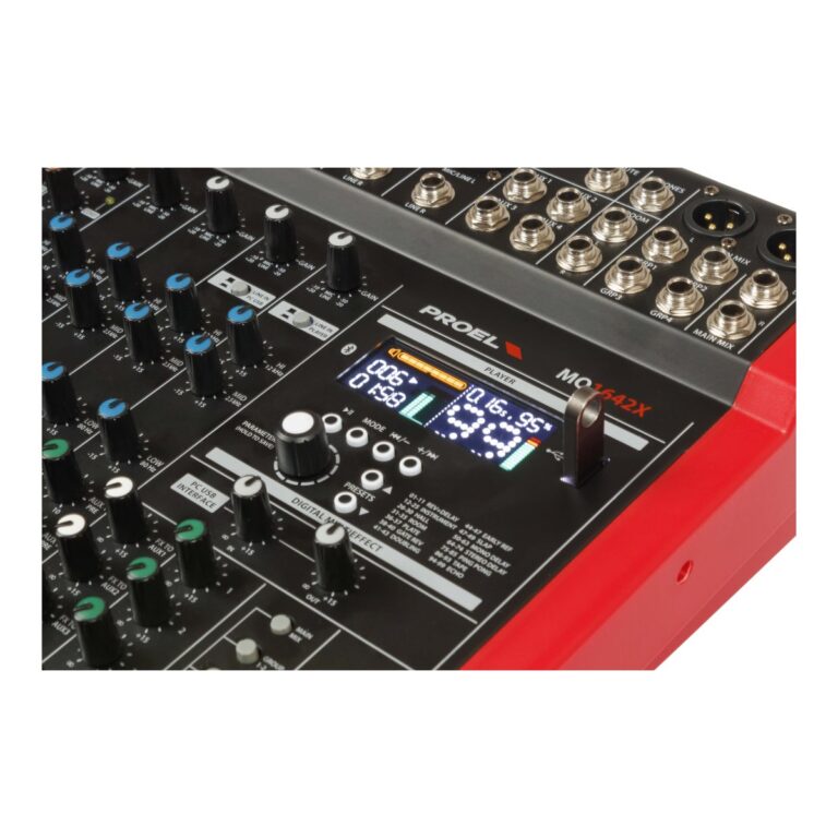 Il modulo MP3 integrato consente la riproduzione flessibile di contenuti multimediali tramite Bluetooth, chiavetta USB (USB-A) o connessione al PC (USB-C), mentre l’interfaccia audio USB consente di registrare il mix direttamente sul computer con facilità.
