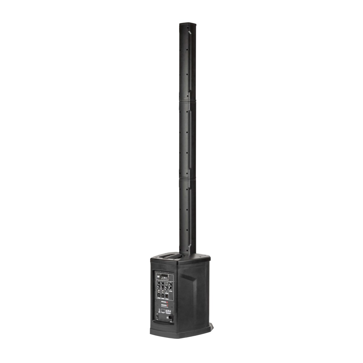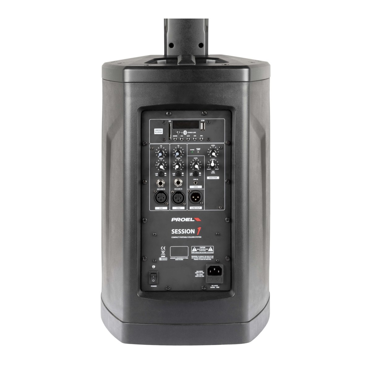 SESSION1 è un sistemaa colonna portatile dotato di ingressi multipli e di un versatile lettoreMP3 con connettività BLUETOOTH. Alloggiato in cabinet in polipropilene leggerie allo stesso tempo robusti, è formato da una colonna con 4 altoparlantifull-range da 2.5” ed un potente subwoofer da 8”. L’elettronica allo statodell’arte include una sofisticata sezione di pre-amplificazione confiltri attivi e doppi LIMITER, ed un potente amplificatore in Classe D da 400W.