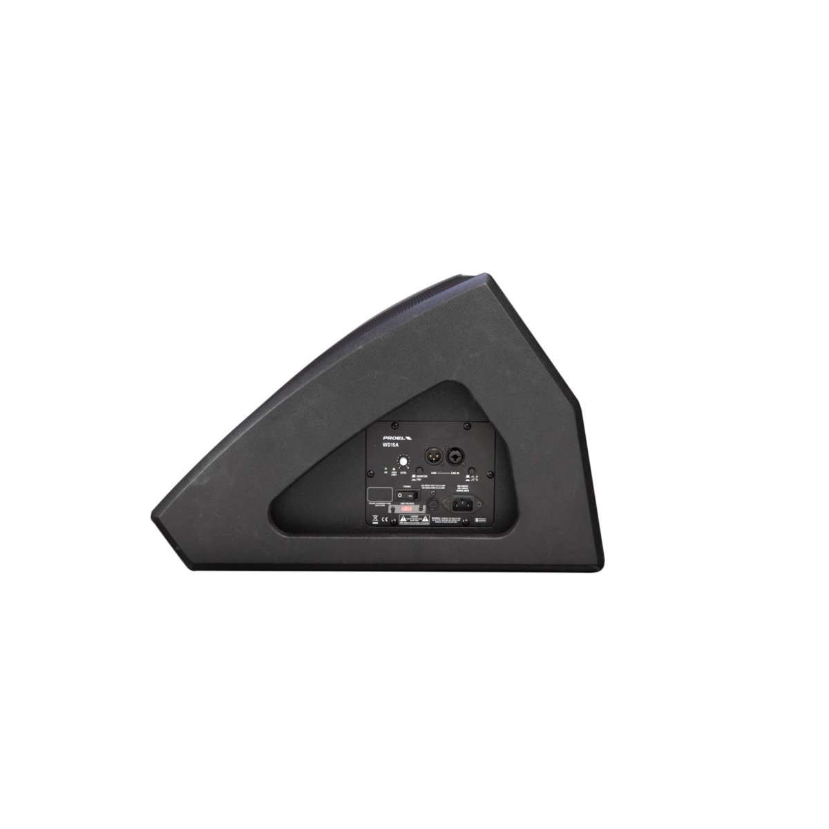 La serie WEDGE è una linea completa di monitor da palco attivi, studiata per offrire non solo ai service ed ai professionisti ma anche ai musicisti non professionisti, una soluzione efficace per il monitoraggio ad un prezzo particolarmente vantaggioso. I monitor da palco WEDGE garantiscono una perfetta intelligibilità ed una elevata pressione sonora, in un cabinet leggero e compatto. Gli altoparlanti coassiali, costruiti secondo specifi che PROEL, rappresentano la scelta ottimale per il monitoraggio, non solo poiché consentono di minimizzare le dimensioni del diffusore, ma anche perché sono in grado di offrire un ottimo allineamento acustico delle due vie ed una dispersione angolare ottimale da qualunque posizione. I leggeri amplifi catori in Classe D con SMPS, abbinati ad un sofisticato processamento analogico, consentono il raggiungimento di elevati livelli di pressione sonora, oltre ad una riproduzione accurata su tutta la gamma, specialmente quella vocale, ed una considerevole resistenza al feedback. Due preset di equalizzazione sono disponibili per utilizzo come monitor (MONITOR) o come sistema principale (FOH). Il cabinet a basso profilo, discreto e personale, con maniglie incassate e finitura poliuretanica anti graffio, si adatta alla perfezione a qualunque tipo di palco. WD15A, con la sua elevata potenza, estensione ed eccezionale risposta alle basse frequenze, è il monitor ideale per bassisti e batteristi. Il driver per le alte frequenze caricato a tromba ed il potente amplificatore integrato ne fanno la soluzione perfetta per palcoscenici anche di grandi dimensioni.